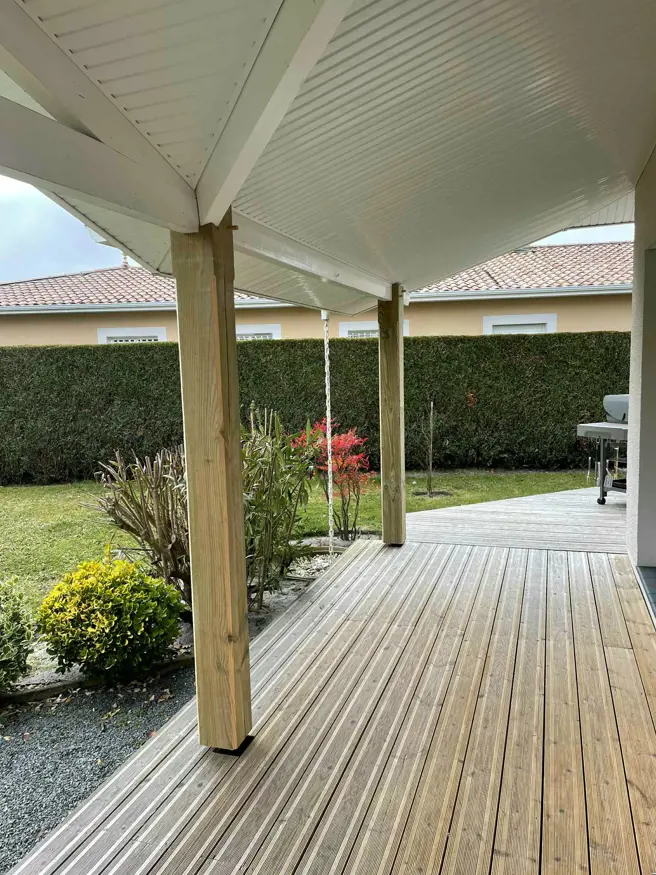 Nous proposons également des prestations complètes en démoussage de toiture, aménagements extérieurs (terrasses, abris, carports), ainsi que travaux d’isolation.
